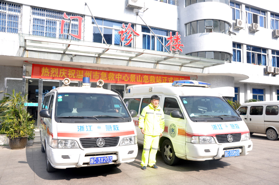为温州市景山急救站落户配备专用救护车2辆,每辆救护车均按温州市急救中心要求,统一急救车标志,安装GPS卫星定位系统,配置相应的专用器材,如担架、氧气瓶、心电图机、除颤仪及各类抢救药品等。