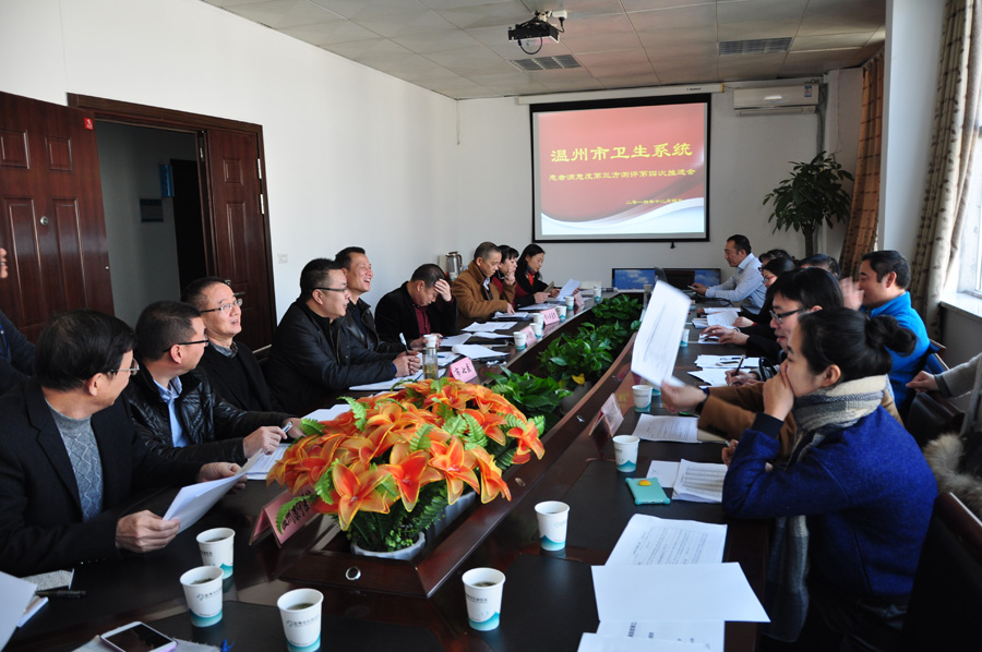 今年市卫生系统组织开展的医院满意度第三方评议工作从5月份开始至 12月份结束,一共测评五次,以“非常满意”、“比较满意”、“基本满意(一般)”、“不太满意”和“不满意”分值计算,全年抽取样本量6000个。测评主要对象包括温州医科大学附属第一医院、温州医科大学附属第二医院、温州市中心医院、温州市人民医院、温州市中西医结合医院、温州市中医院、温州医科大学附属眼视光医院、温州医科大学附属口腔医院、成人影院