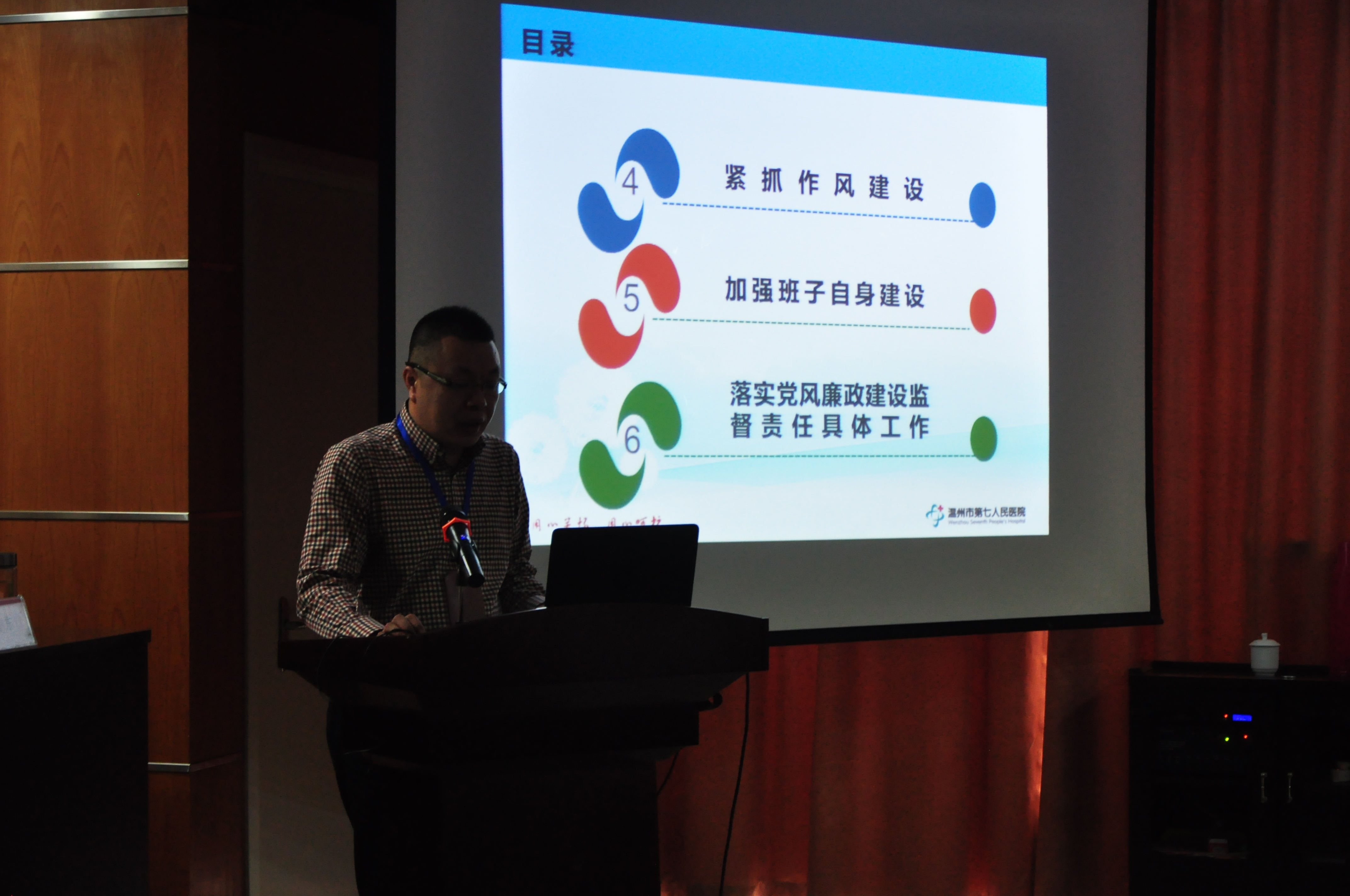 康复楼六楼会议室召开动员会,会议由林小东院长主持,市纪委驻卫生局监察室王珏主任首先对此次巡察工作进行部署,以一张图的形式简单明了地告诉大家此次巡察工作的内容、形式、时间节点等,并要求巡察组成员公正、公开、公平地进行巡察,同时对全院中层干部进行集体廉政谈话,希望领导干部管理好自己、把握平衡,不要为了钱权而使自己心理失衡、道德师范,权力失控,只有把人做好,一点一滴充实自己,修炼品德、勤恳工作、廉洁做官,那才能构成一个不歪不斜不倒的“我”。