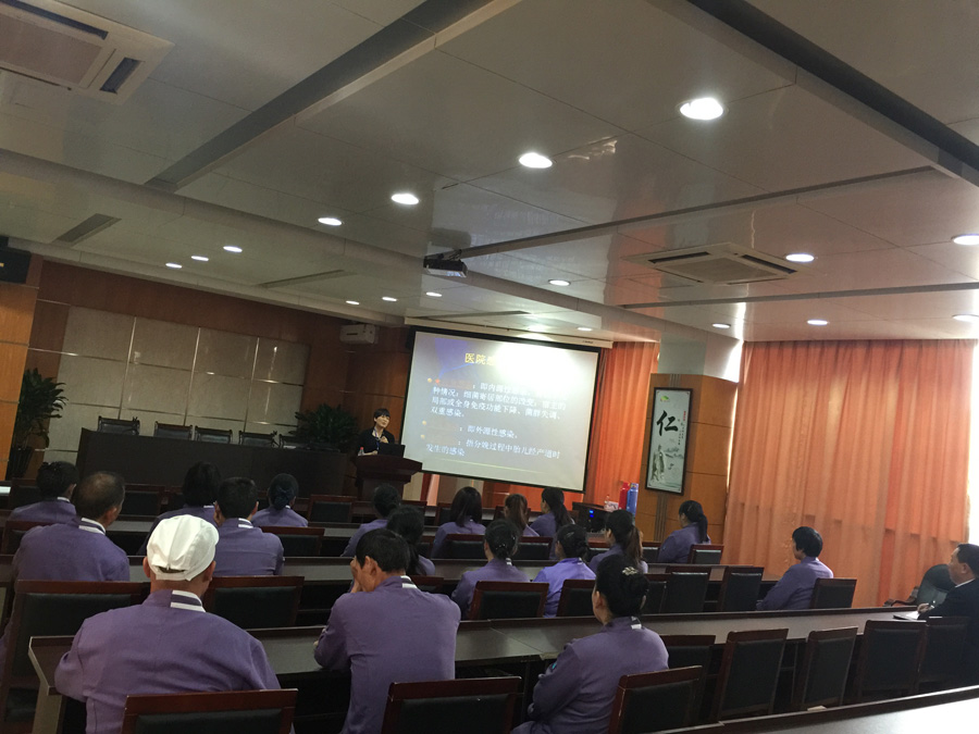 培训会上,季显琼主任重点针对院内感染的概念、手卫生知识、消毒隔离知识及涉及工勤人员的医疗废物管理条例进行了通俗易懂的讲解。部分工勤人员对工作中存在的疑点和困惑进行提问,季主任一一予以详细正确的解释和回答。