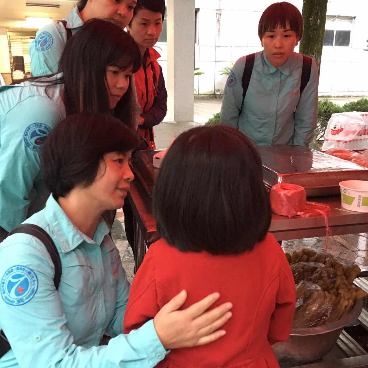 心理救援队的队员静静地走到这些亲属的身旁,轻轻的拥着她们,陪伴着他们,有些亲属已经哭到无力,整个人就靠在队员的身上,以获得一份支持的力量。