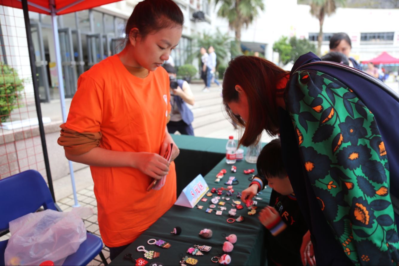 公益专卖区里,成人影院 康复科工作人员将患者精心制作的手工纸花和钥匙圈进行义卖,展品受到了在场孩子的热烈追捧。孩子们纷纷献出自己的一份爱心。