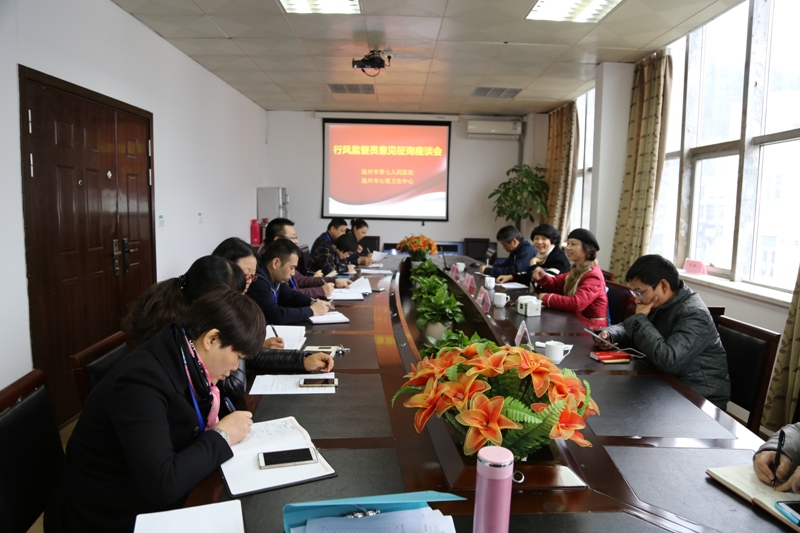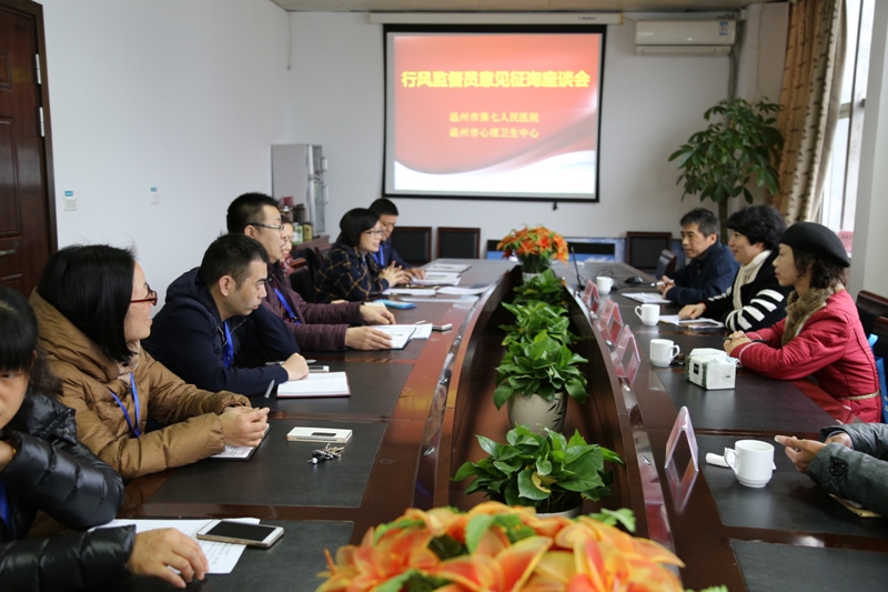 监督员们在肯定成绩的同时,也对医院在医疗服务、行风建设、对外宣传等方面提出了宝贵的意见和建议。监督员温州市社会体育指导中心主任、政协委员夏新天建议要加大宣传精神、卫生方面的科普宣传,逐步消除群众对精神疾病的偏见,要关注社会关切,增加医疗行业收费、采购等环节的透明度;监督员卫计委人事处副处长周峰建议立足公立专科医院进一步地加大宣传力度,加强心理卫生知识的教育,提高群众精神健康水平,减少精神疾病的发生,以更好地履行医院的社会责任;监督员温州日报主编章会建议以去年的行风评议优质为抓手,继续做好优质服务、精细化服务,结合市里的万人评议活动,在院内开展患者评议活动,提升、改善医院医疗服务水平和医德医风,树立医院的正面形象;监督员温州柒零参网黄学敏经理建议在门诊就医时多增加些保护病人隐私方面的设施,同时要在宣传定位方面有更好的思路;监督员瓯海区净水居委会江如书记希望医院今后能更加积极地进入社区开展讲座,宣传精神心理科普知识。