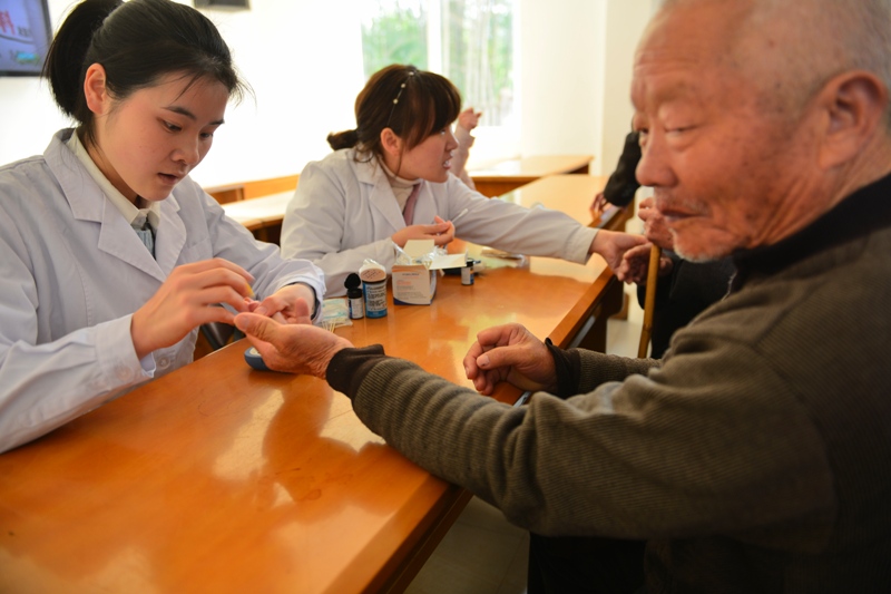 志愿者各施所长,医生为老人们进行健康检查,听老人讲述自己的病症,耐心地向老人讲述疾病预防知识和饮食起居中的注意事项,并送上免费的药品;护士耐心地给每位老人量血压、测血糖;其他志愿者则做起了清洁卫生服务,有的打扫天花板、有的擦拭窗户、有的扫地拖地。此外,我们的志愿者还向老人传授春季养生保健知识,教老人跳“手指健康操”,帮助老人们疏通经络,强身健体。整个义诊现场爱意融融。
