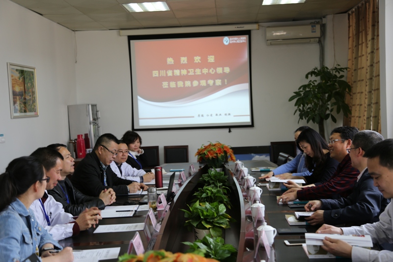 对四川省精神卫生中心领导一行的到来表示热烈欢迎。何如纪委书记简要介绍了四川省精神卫生中心的基本情况,说明此行的目的旨在交流学习兄弟单位在医院管理和改善医疗服务措施方面的做法。随后,林小东院长向来宾介绍了医院的基本情况、医院建设情况以及医院发展的未来愿景。并就对方关注的提升服务品质、医院精细化管理、提升患者满意度、心理危机干预、社区防治等方面进行了详细的介绍。同时,双方就医院发展、规划建设、公共精神卫生防治等问题进行了深入交流。