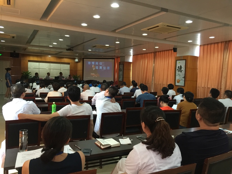 开展“珍惜岗位,远离职务犯罪”警示教育,会议由林小东院长主持,胡立荣书记进行讲解。院领导、中层干部、临床医师、医技、药剂、设备、总务等工作人员约70余人参加会议。胡立荣书记以“珍惜岗位,远离职务犯罪”为题对腐败及职务犯罪进行了概述,同时配合廉政短片的播放,向大家介绍了近年来反腐斗争的基本情况,重点讲解了医疗系统腐败案件的特点,分析了职务犯罪的原因,强调了预防职务犯罪工作的意义,并提出了预防对策。告诫与会人员要算好“4笔帐”,即经济帐、自由帐、亲情帐、政治帐。