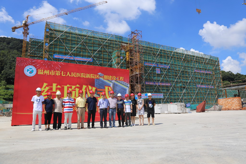 林小东院长、胡立荣书记等党政领导班子成员,新院区建设项目组及施工单位工作人员参加了结顶仪式。
