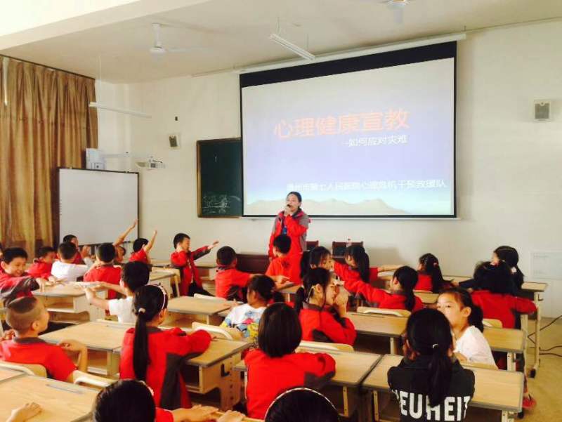第三小分队上午走进泗溪镇小学,分别给二年级和四年级80名小学生进行了心理健康宣教,告诉孩子们如何面对灾难,教导孩子们遇到灾难要学会寻求他人帮助,教孩子学会放松、鼓励孩子进行身体活动。下午,对11名村干部进行团体辅导,村干部分享这几日来的身体状况、心理感受,他们当中很多人都是在9月16日爬山涉水步行2-3个小时赶回来,投入到抗险救灾中。虽然已连续工作多日,尽管身心疲惫,但他们依然坚持在工作岗位上。心理咨询师对村干部进行放松训练,帮助舒缓他们紧张的身心。