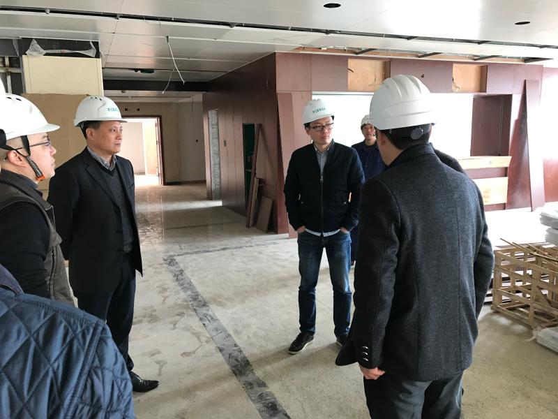 指导组一行在成人影院 副院长姜德国的陪同下,带领项目组、监理单位、施工总承包单位、装修工程单位及各分包单位先后对本工程门诊楼一层,四楼行政办公室,住院楼7-9层进行考察。