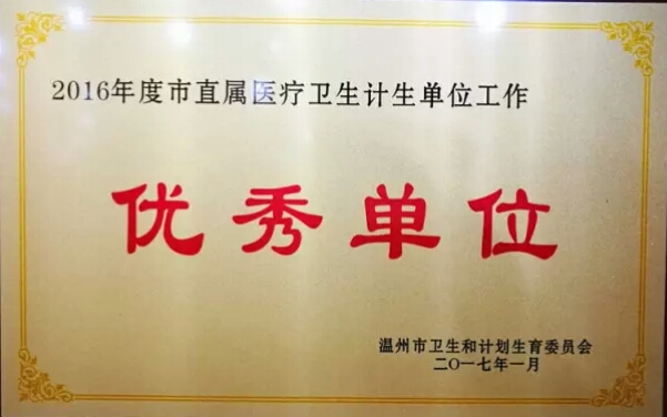 2月10日,卫计委召开了卫生计生系统作风建设暨考绩表彰大会,市七医在温州市卫生医疗单位2016年度考绩中,被评为年度考绩考核优秀单位。这是市七医成功两年“连任”考绩优秀单位荣誉称号。该院林小东院长连续四年荣获卫计委领导干部考核优秀等次,此次院长林小东、书记胡立荣被评选为市直属医疗卫生计生单位工作优秀领导者,姜德国副院长荣获卫计委领导干部考核优秀等次。