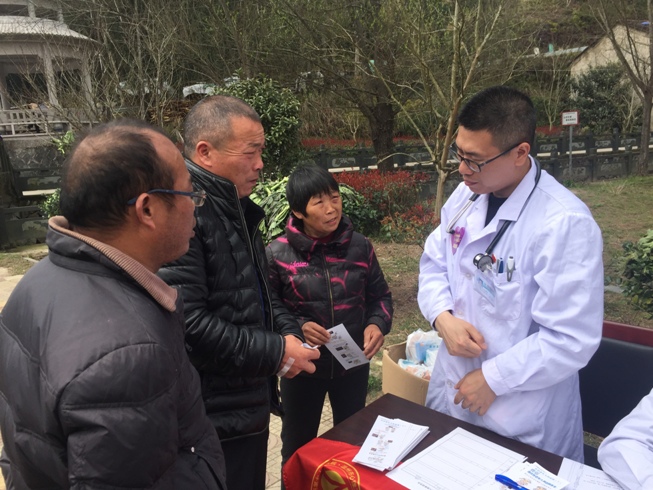 上午七点三十许,市七医的老年医疗团队带上体检的必需品和常用的药品,跨越百里,经过三个多小时的颠簸车程,医疗团队终于抵达泰顺县包垟乡。我们的医护人员有序得为空巢老人诊治、咨询、发放健康宣传资料,为他们测量血压、血糖,还为有需要的老人进行记忆、抑郁和焦虑等方面的筛查,根据老人们的实际情况发放药品。有位老人非常沮丧拉着向徐大利医生的手,阐述自己悲惨的生活:我本有一个安定的生活,我唯一的儿子十六年前因车祸去世,我的老伴也去世了,我为了让自己不孤单,来到现在的老家,跟邻居能有个相互照应……一阵诉苦之后,徐大利医生耐心开导,专业诊治,最后这位老人留下一句“谢谢”,迈着轻松的步伐离开了。