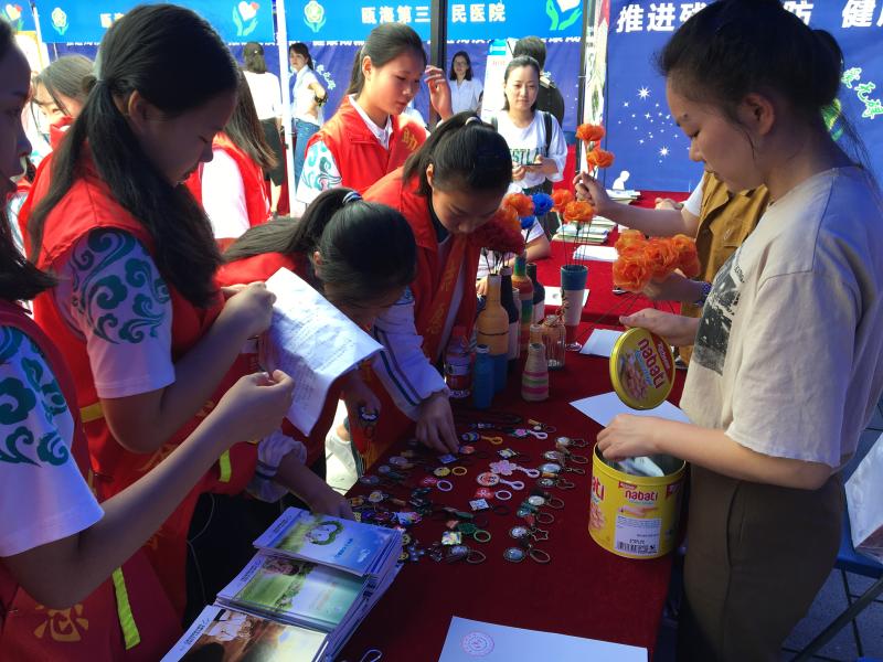 精神障碍康复患者手工制作的精美工艺品进行义卖,展现该院康者康复成果。义卖吸引了大批热心市民的关注,在了解失七医精神残疾患者康复情况后,纷纷购买手工艺品,献出自己的一份爱心。此外,市七医还为到场的残疾人士提供免费的血压测量,提供精神康复、残疾预防宣传及相关服务。通过展板及发放科普宣传册的形式进行精神疾病宣传。现场测量血压20余人、发放资料100余份。
