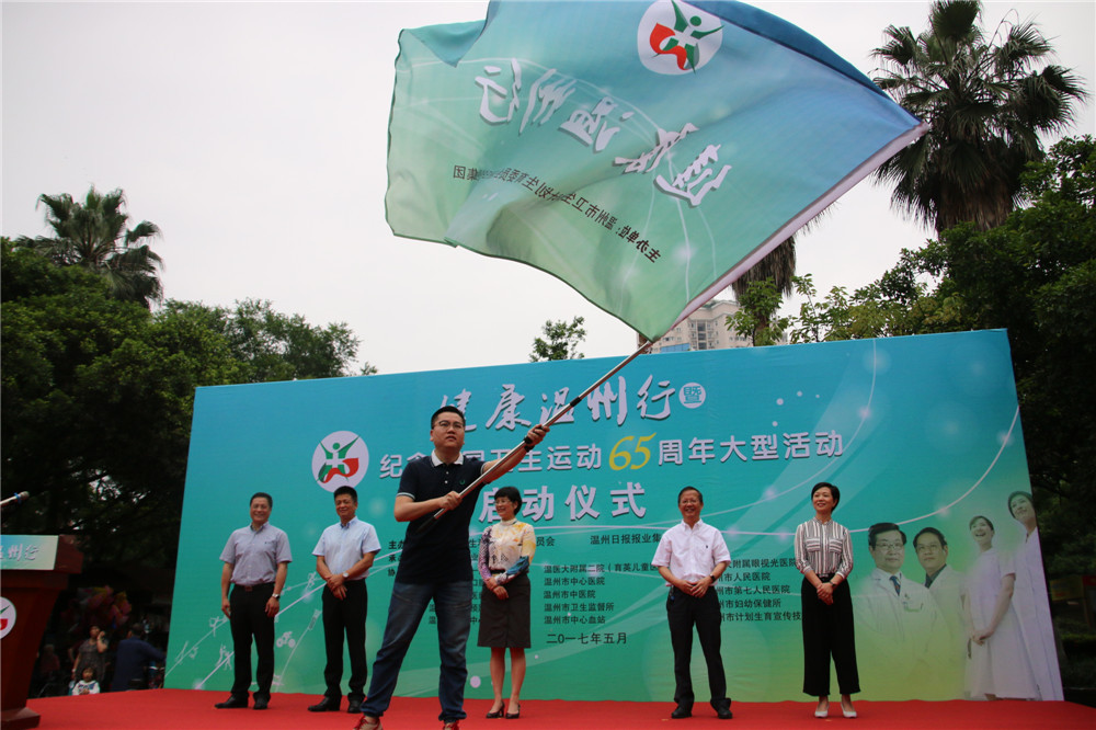 为“健康温州行”活动授旗,