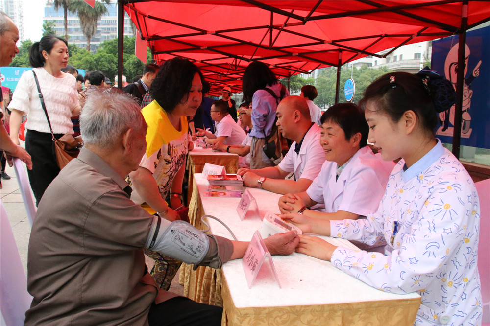 纪念爱国卫生运动65周年大型活动启动仪式在松台广场举行。义诊、送医送药等便民服务吸引了大量过往市民的驻足参与。