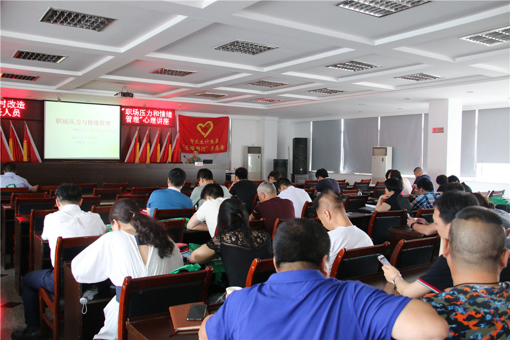 市七医除关注城中村改造居民的心理健康外,还为另外一重要人群——基层拆迁攻坚干部提供心理健康服务。活动当天,市七医副院长、主任医师郑维芳率心理咨询师来到新桥街道办事处,上门为他们带去减压方法。