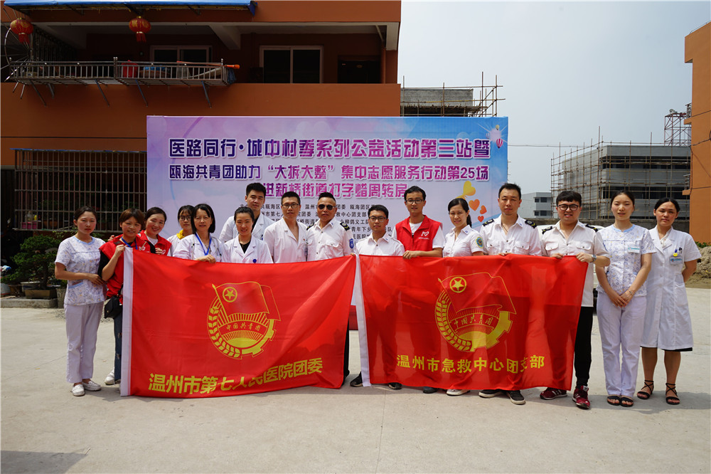 6月7日上午,温州市卫生计生委“医路同行•城中村季”系列公益活动启动,此次活动牵手瓯海共青团助力“大拆大整” 集中志愿服务走进瓯海区新桥街道打字蜡周转房,30多名来自各行业的志愿者为打字蜡周转房的180户居民提供各类便民服务。当天,成人影院