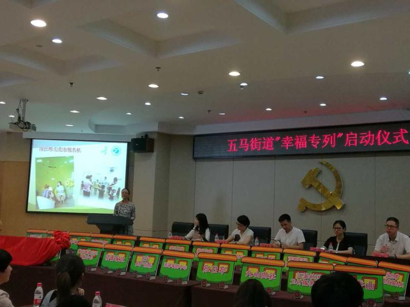 绿丝带志愿团队参加了五马街道组织的“五马关爱幸福吧”平台社会公益团队合作签约仪式。活动仪式上,22个社会公益团队分别认领了一节车厢,共同伸出关爱之手,仪式最后,五马街道的“幸福专列”装载着满满的爱心响起鸣笛浩浩荡荡地出发了。
