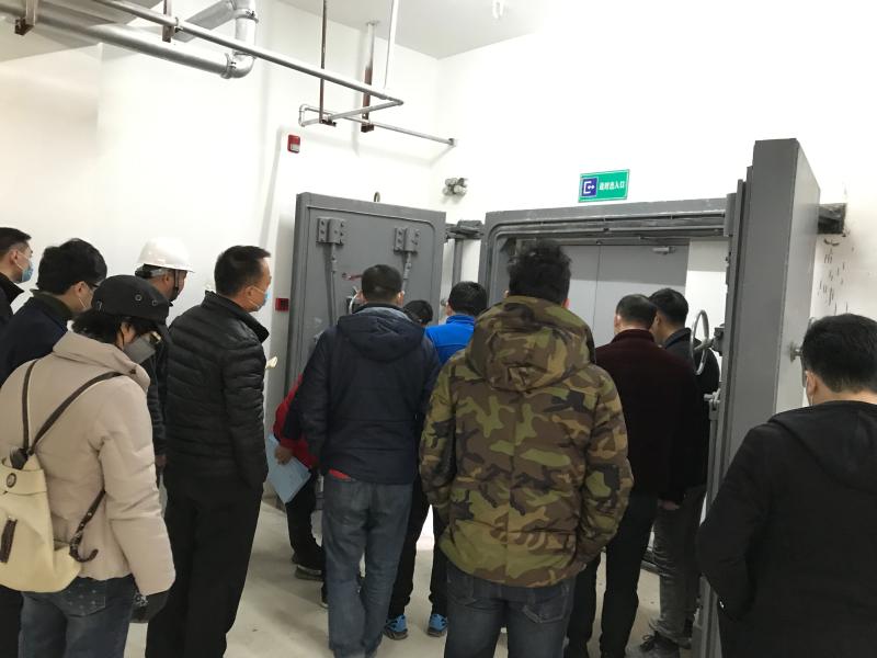 会上总包单位就本工程人防工程做概述,监理单位对监理情况作汇报。而后的现场检查事项,质监人员在相关人员的带领下对人防封堵、人防疏散及排烟等情况作详细检查,同时抽取多到人防门检查质量。