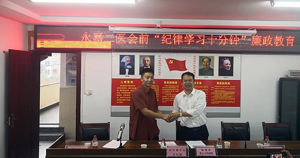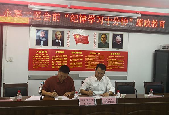 于昨日下午,由院长林小东带队,医务科科长陈策等一行四人远赴永嘉县第二人民医院,就双方的合作事宜举行签约仪式,支援对方建设精神科门诊、心理门诊以及国家政策规定贫困精神病人免费赠药项目。