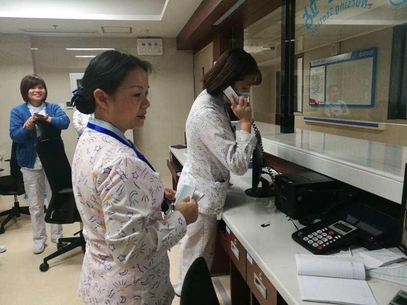 10月29日下午,护理部主任方春霞对潘桥院区各病区进行安全质量追踪检查,本次重点检查内容为:如何使用一键式报警、护工技能培训落实情况、各科重点病人每日巡查落实情况等。