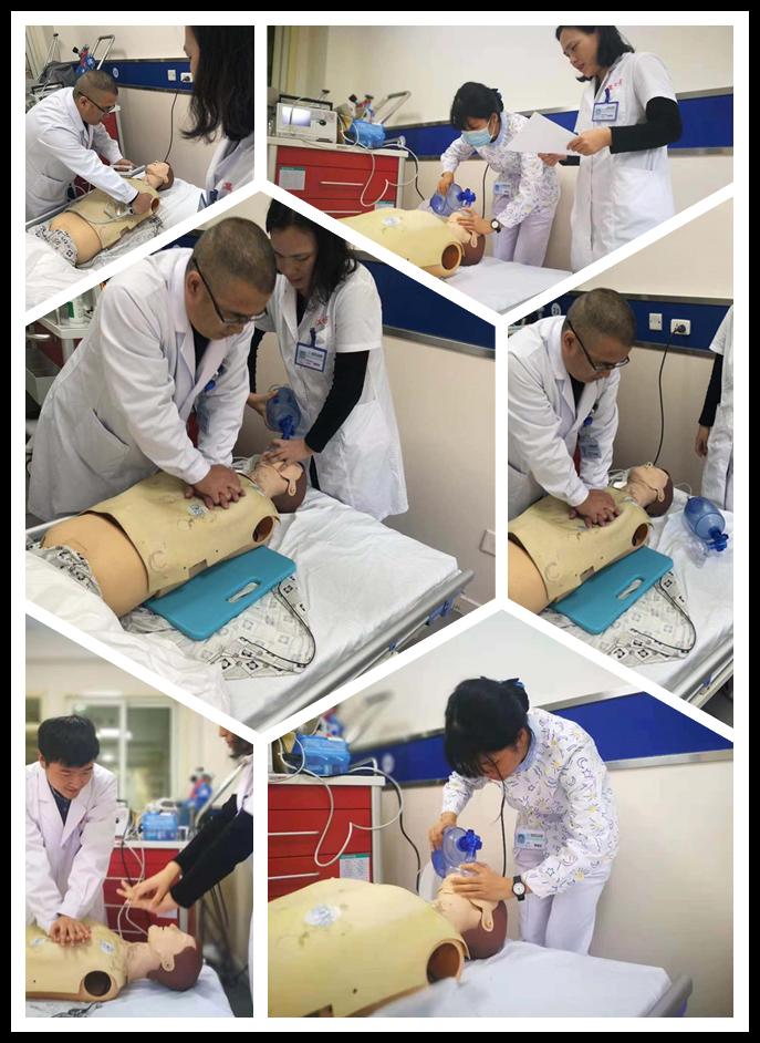 近日,康复医疗病区举行了一场病区急救演练,内容包括:简易呼吸气囊的使用、电除颤机的使用及双人心肺复苏操作演练。