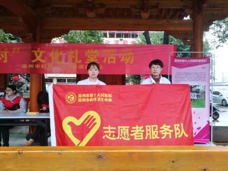 义诊队伍由康复科巾帼文明岗志愿者许彬彬医师及陈怡治疗师参与。