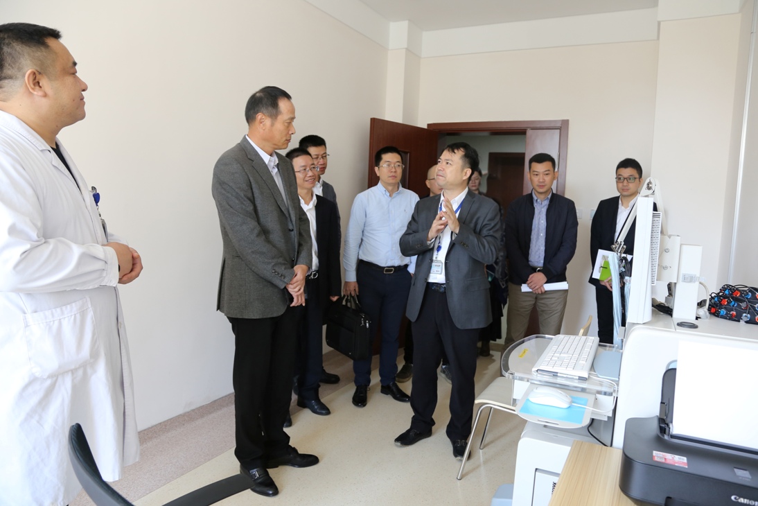 院长林小东作交流介绍,副院长姜德国,总会计师徐旭利,院长助理陈春棉等陪同参观。