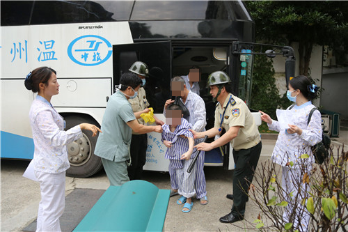 5月24日,龙湾港务院区二十二病区搬迁至腾空的西山院区,100多名从龙湾优抚院区搬迁的患者,于当天9时许达到西山院区住院部楼下,早已腾空就绪的病房迎来了一批“新客人”。当运送患者的车门打开的那一瞬间,特勤人员、安保人员、医护人员,早已准备就绪,迎接患者们的到来。