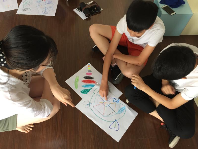 绘画治疗是通过绘画的方式去投射出自己内心中潜意识的想法。在场的孩子们在心理咨询师的指导下,都用自己的非惯用手进行绘画,感受那种不受控制的神奇感觉,然后再在别人的画中添加一笔,慢慢的,原本自己单调的画作开始充实起来。最后心理咨询师让同学们在画中寻找美好的东西。孩子们通过这个活动可以从中明白生活有时候会有很多的干扰因素,比如“非惯用手”、“别人添加的图案”,所以生活不可能总是我们理想中的样子,我们应该努力去发现生活中那些美好的事物。
