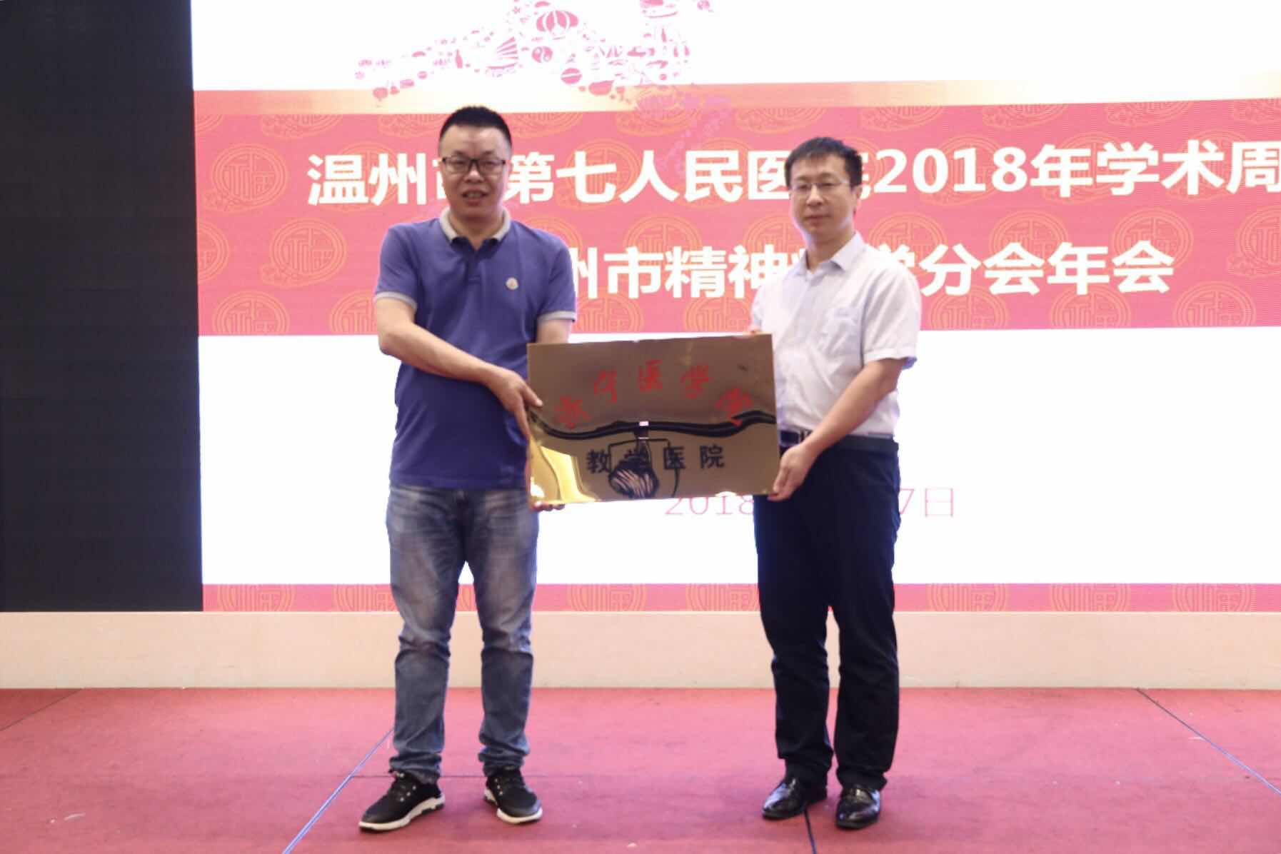 学术周上,市七医还挂牌成立了山东济宁医学院教学医院教学基地,以及南开大学附属天津市安定医院天津市精神卫生研究所温州分中心两块牌子。