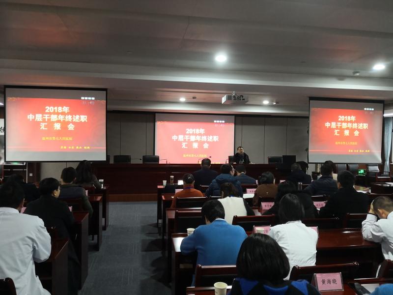 于2019年1月10日、11日在潘桥院区门诊楼4楼1号会议室举行了2018年度中层干部年度考核述职报告会。报告会分为职能科组与非职能科组进行,全体中层干部共80余人参加了会议,书记徐象平、院长林小东等全体院领导班子听取述职。