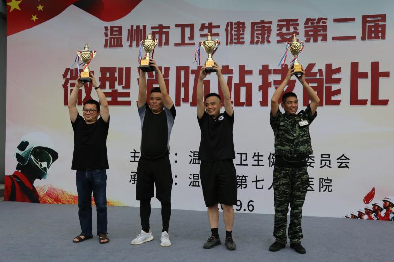 经过激烈角逐,温州市第七人民医院最终脱颖而出,获得团体第一名。通过此次比赛活动,不仅加强了各参赛单位微型消防站团队协作能力,提升了队员消防技能,同时促进了各单位间的交流学习,有效提升我市直属医院微型消防站整体应急能力水平。