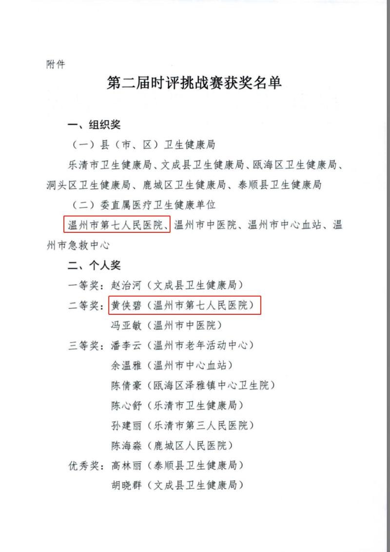 从市卫健委第二届届时评挑战赛结果通报传来喜报,市七医时评挑战赛7人参赛队在本次比赛中获得了“团体组织奖”称号,同时参赛组员1位获得个人二等奖,3位获得个人优秀奖的优异成绩。