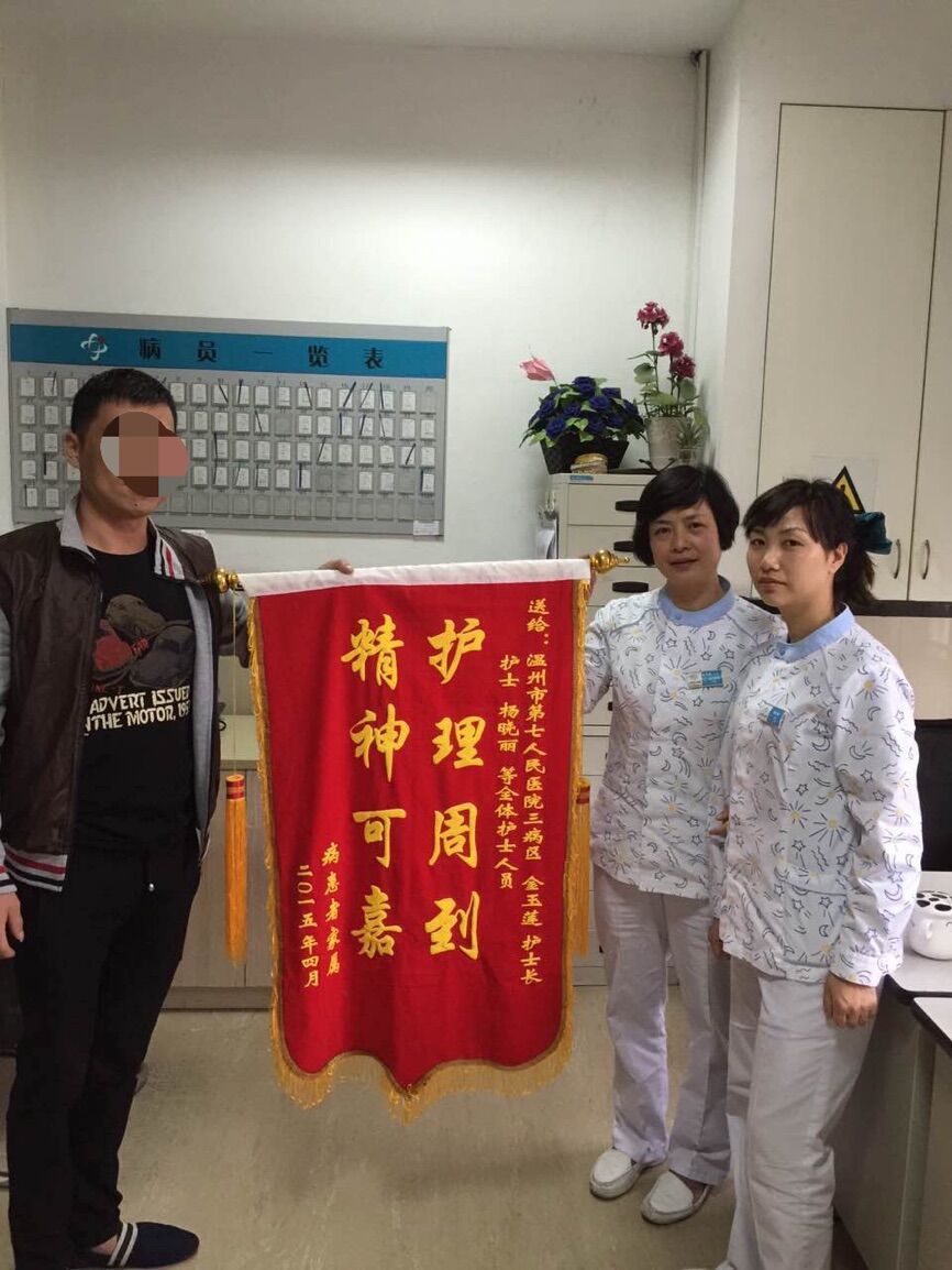 周姓患者因为“强迫障碍”曾多次入住成人影院 治疗。在去年至今的三次住院期间,医护人员对患者都关爱有加,悉心照顾。特别是护士长金玉莲与护士杨晓丽,不但在患者住院期间给予全方位的护理、宣教及帮助,还在患者出院后予以延伸服务,经常打电话关心患者的疾病发展情况,帮助与监督患者遵医嘱正确服药。这不仅提高了患者的服药依从性,更调动了患者的社会支持系统,帮助患者树立自信心,从事力所能及的工作,最终回归社会。